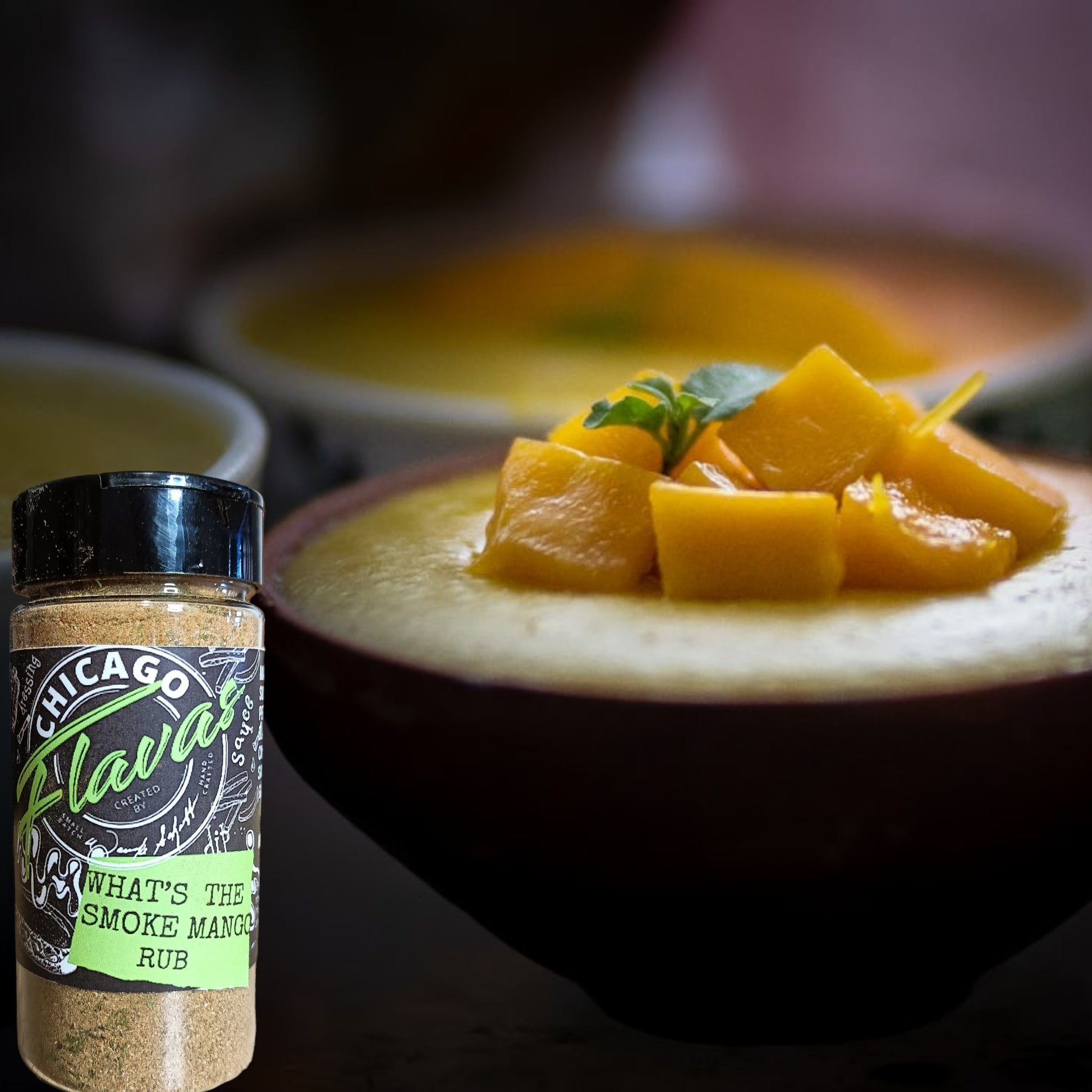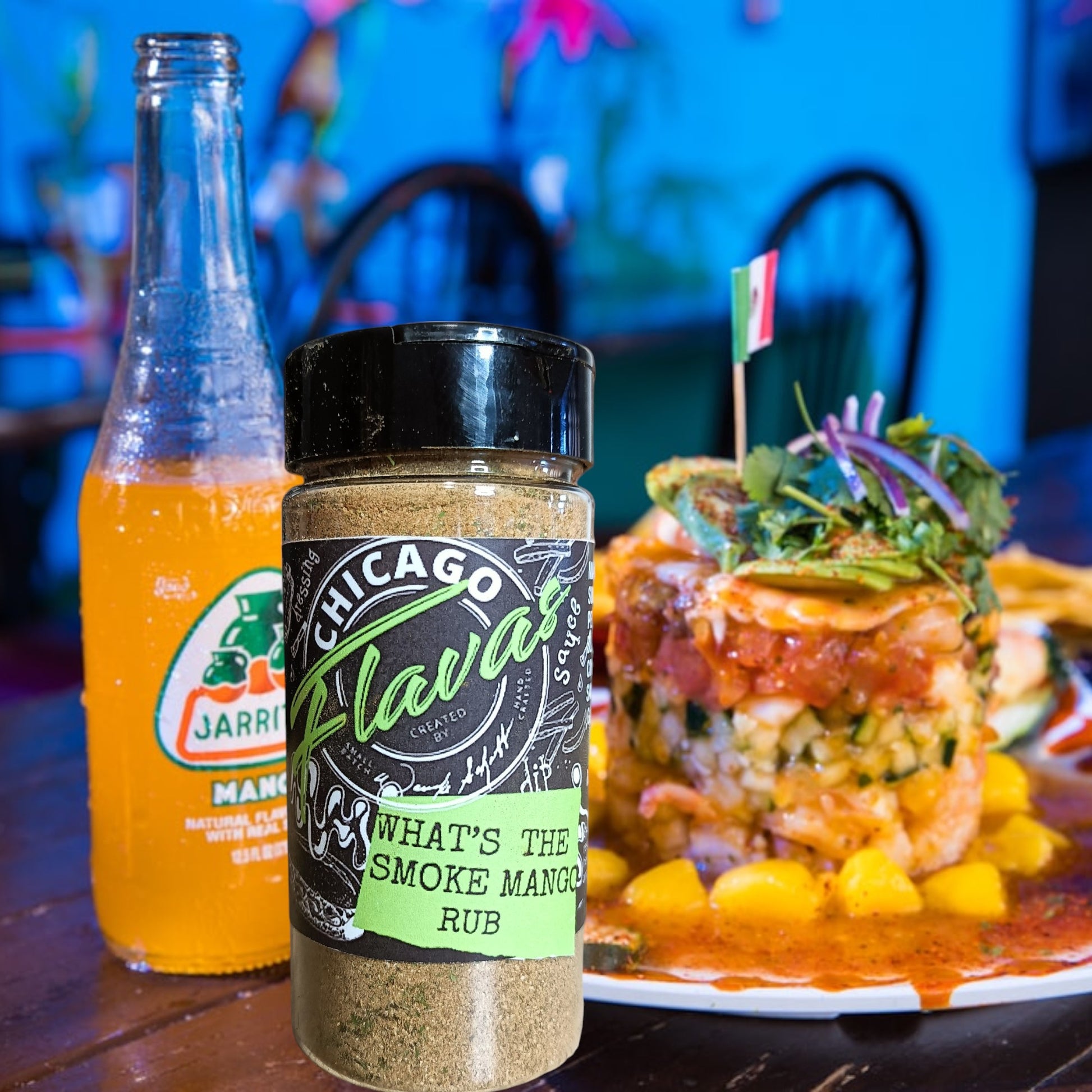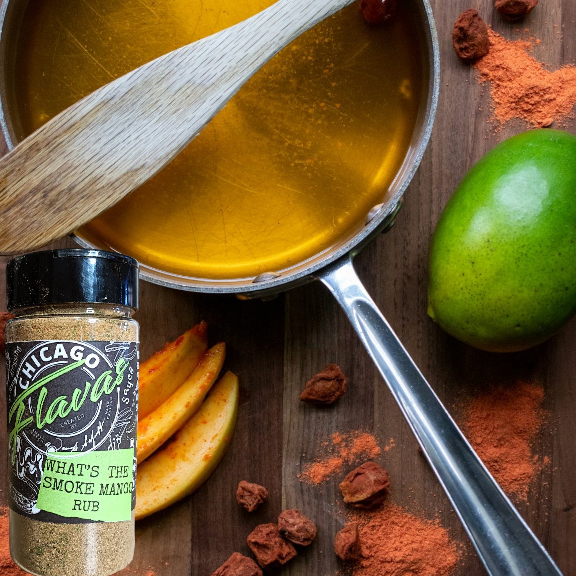 "What's That Mango Smoke" from Chicago Flavas: a bold and tantalizing blend of amchur mango powder, cayenne pepper, and ghost pepper. This unique seasoning is crafted to add a burst of fruity tanginess and a fiery kick to your favorite dishes. Whether sprinkled on grilled meats, mixed into sauces, or used as a rub, "What's That Mango Smoke" promises to elevate your culinary creations with its irresistible flavor profile. Get ready to experience a taste sensation like no other with Chicago Flavas' "What's That Mango Smoke" seasoning!